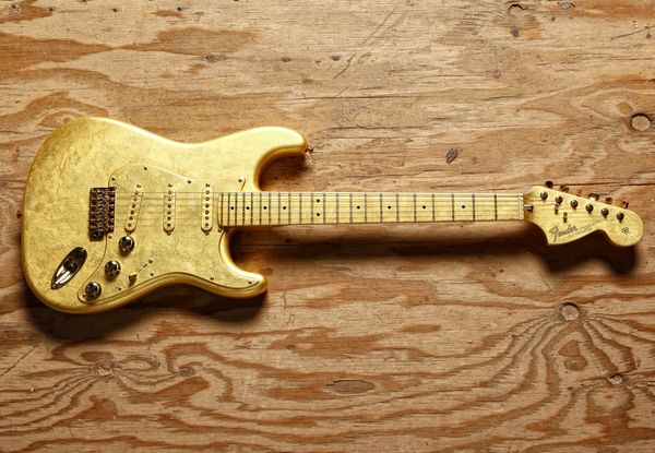 When I think of Prince at the mic stand with a guitar strapped across his body, I rarely think of Prince with a Stratocaster. But his love affair with Strats extended from 2003 to 2011, starting with the custom blue Strat, and ending with him regularly playing a collection of them – in Red, Orange, Purple, and the most recognisable of all – this custom Gold Stratocaster.