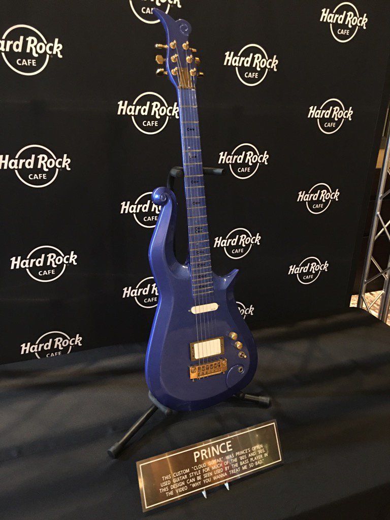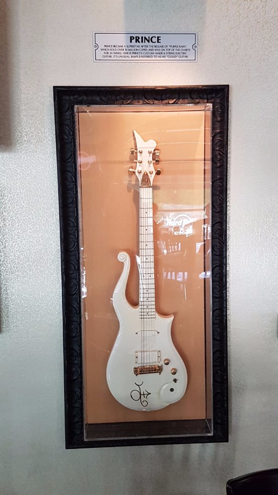 Hard Rock Cafes and Hotels have a dazzling array of Prince memorabilia on display in their venues around the world. In most of them, guitars take centre stage.